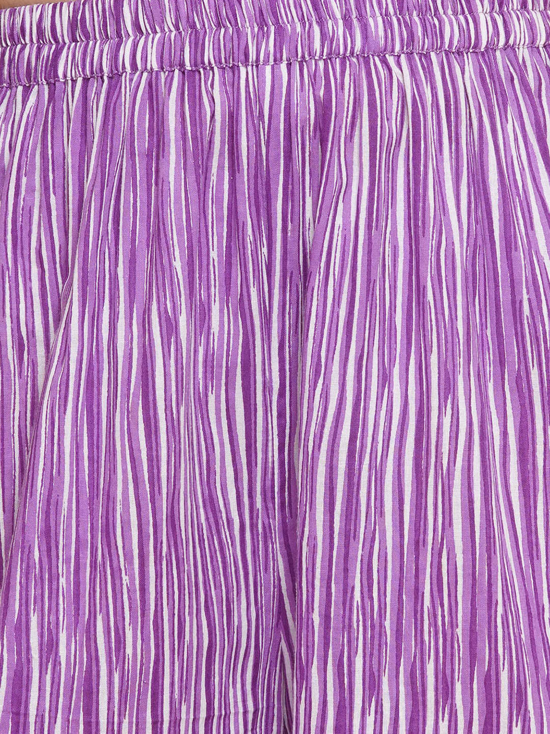 Lavanya is a charming purple Kurta–Gharara set crafted in soft pure cotton. The A-line kurta features delicate ethnic motifs and a beautifully detailed yoke embellished with gota lace and fabric buttons. Adjustable side doris with tassels add a playful finish. Paired with a flared printed Gharara, this set is perfect for festive days and comfortable celebrations.