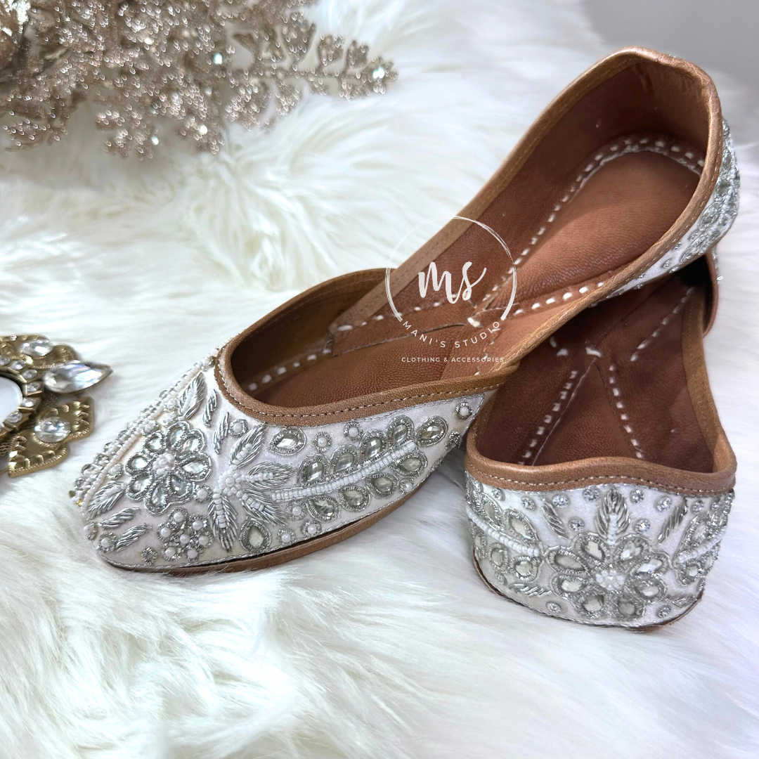 Soft, delicate, and dreamy – Subah captures the lightness of a fresh morning. With intricate silver embroidery on a pearl-white base, this pair is ideal for day events, engagement looks, or adding elegance to minimal outfits.